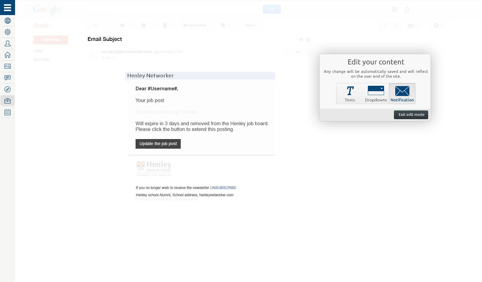 1. למשל, מערכת אדמין (לחץ להדגמה) לתת-מערכת מורכבת לשינוי (ע”י הסופר אדמין) של טקסטים שונים באתר של מכללה מסויימת עליה הוא אחראי (למשל, אם הוא רוצה לתרגם את הטקסטים מאנגלית לשפה אחרת) – הרעיון שהגינו פה הוא האפשרות של האדמין להגיע לכל עמוד מעמודי הפרונט אנד של כל מכללה ולשנות את מה שהוא רוצה בה – את הטקסטים הגלויים, את הטקסטים של הודעות השגיאה, הפופאפים וכולי. הכל באופן WYSIWYG בשכבה מעל עמודי האתר עצמו. כל שדה שהאדמין עומד עליו הופך לעריך. כך שבמוד עריכה כזה, הוא לא יכול בעצם לנווט באתר, שהרי כל מה שהוא יעמוד עליו לא ינווט אותו כי אם יאפשר לו לערוך שם את הטקסט. לכן, בצד שמאל תהיה נביגציה לעמודים השונים באתר, וסרגל הכלים “Edit your content” מאפשר לערוך את סוגי הטקסטים השונים שאינם גלויים באתר, כמו הודעות שגיאה, פופאפים וכו’.